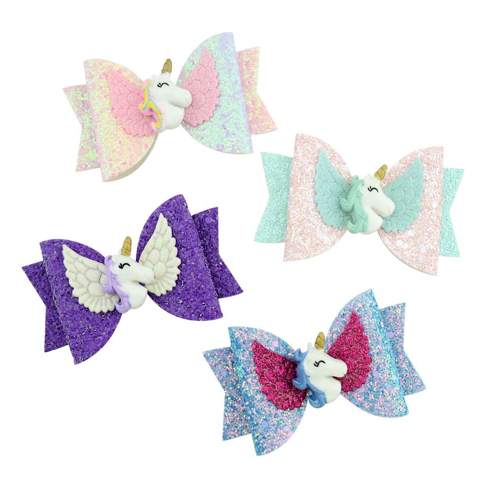 Multi-color and style unicorn glitter hair bow - Many different color and style for you to choose, make you a colorful and wonderful life; bring happy and surprise to your little princess.Suitable for any occasion.