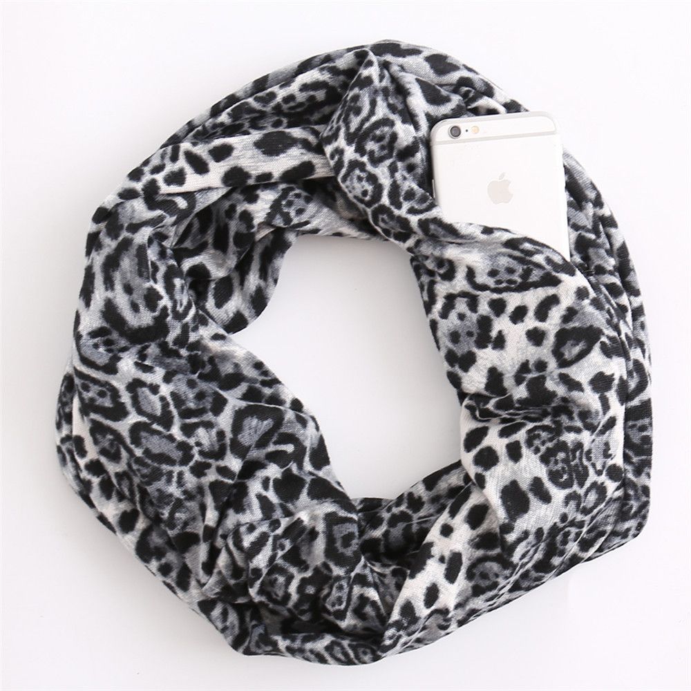 Leopard Snake Print Scarf with Zipper Pocket European and American Fashion Accessories Scarf